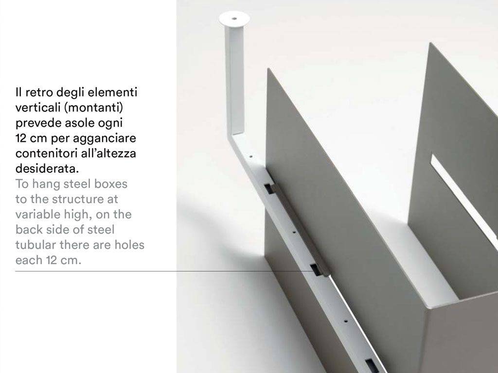 Man kann die Behälter in jede Position der Struktur stellen, um das Bücherregal zu personalisieren, innerhalb der Anlage anpassen nach Knopflöcher ab 12 cm belieben, auf der Rückseite die senkrechten elemente festgelegt auf die gewünschte Höhe Behälter legen mit der Bücherregal.