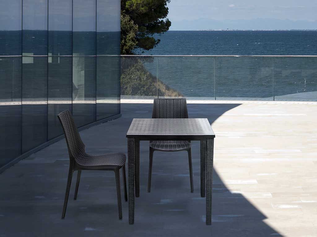 Kleiner Stuhl aus geflechtes Polypropylen, stapelbar. Mit Glasfaser verstärkt. Mit oder ohne Armlehnen verfügbar. In jede äußerliche Situation verfügbar.ABMESSUNGEN:L. 48 W. 56 H. 88 H. Sitz 47