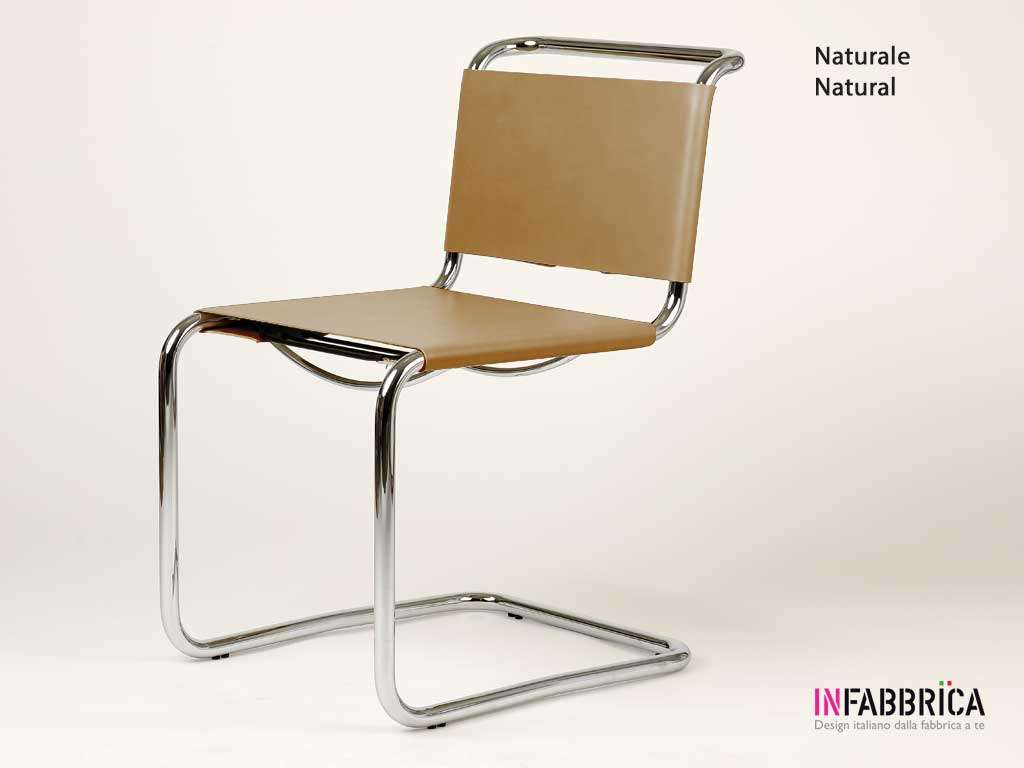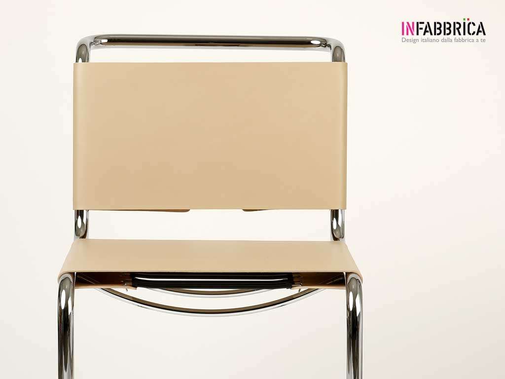 Stuhl mit Struktur aus verchromtem Stahl, Sitzung und Rückenlehne sind mit Leder bezogen. Ein zeitloses Design (Bauhaus) und auch eine hohe Resistenz dank der Struktur.