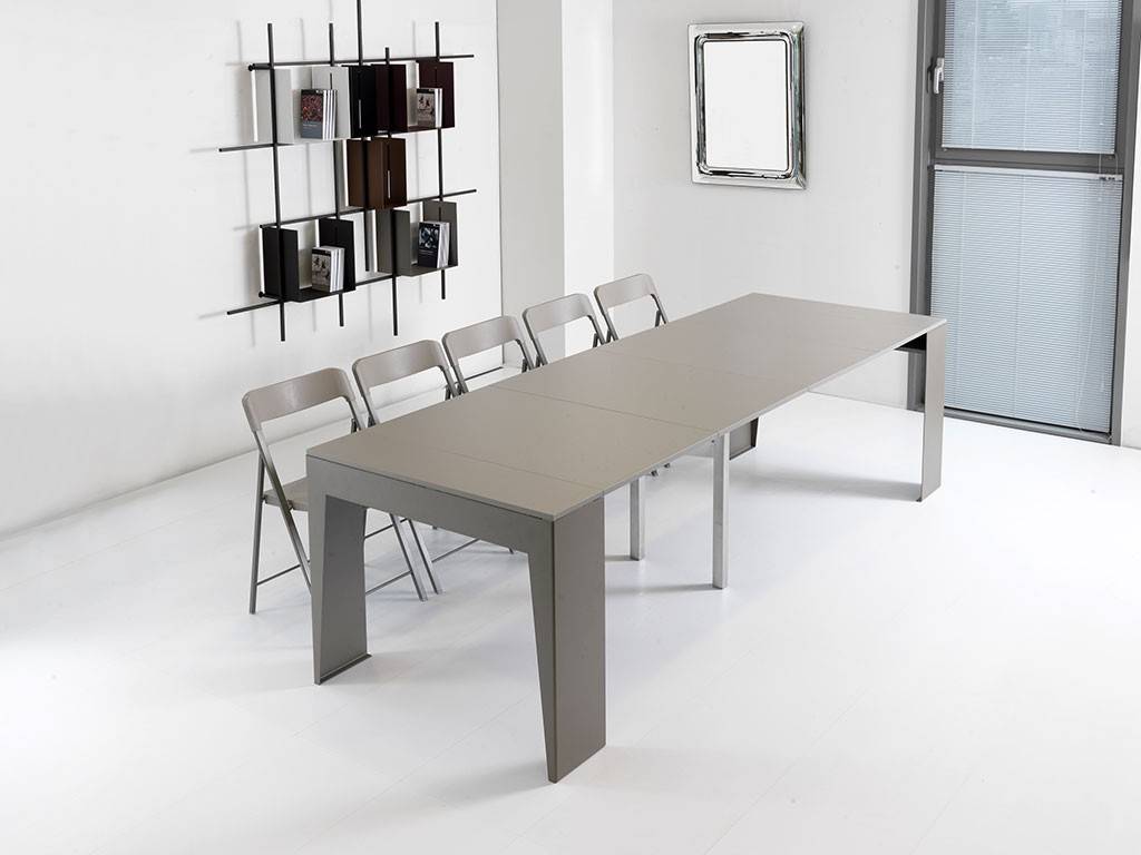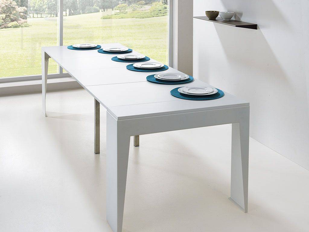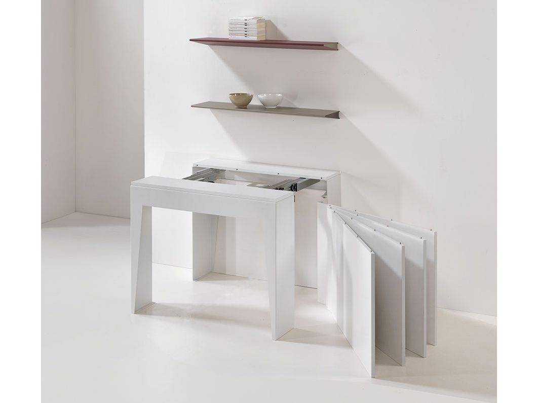 Ausziehbare Konsole, ausziehbarer Konsolentisch, ausziehbare Konsole aus Metall, ideal als ausziehbare Konsole Design oder moderne ausziehbare Konsolentisch. Ausziehbare Tisch-Konsole mit Struktur aus lackiertem Stahlblättchen. Top aus umweltverträglichem Walzgut 18 mm mit Soft-Touch Feinarbeitung. Der Tisch hat 4 Verlängerungen (jede cm 60), die in der Struktur liegen.