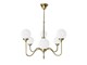 Eleganter Kronleuchter mit Messingstruktur und sechs geschliffenen weißen Glaskugeln, Kronleuchter im