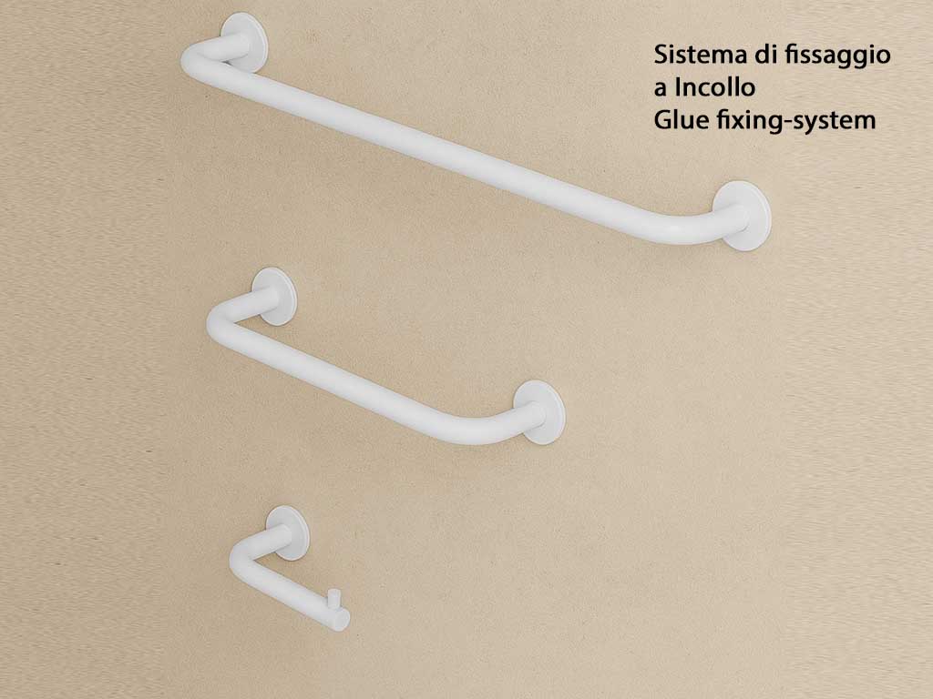 Fissaggio: Incollo, Finiture Laccate: Bianco Opaco RAL9010,Dimensioni: Porta asciugamano lavandino 50 cm - L.50 H.1,8 P.8,5 cm