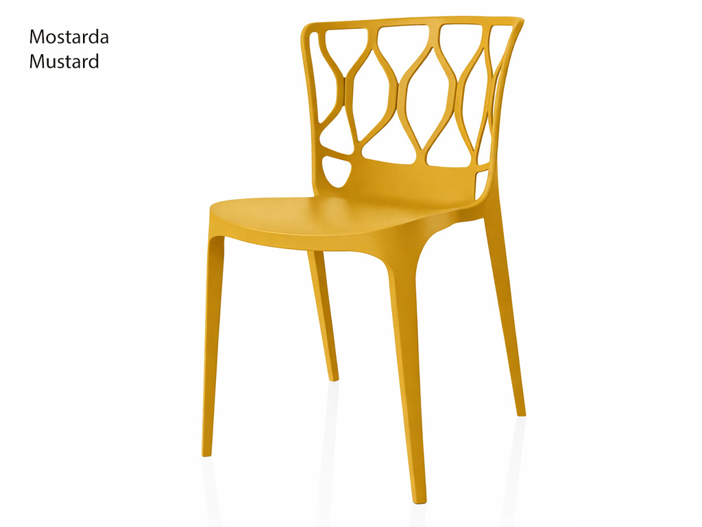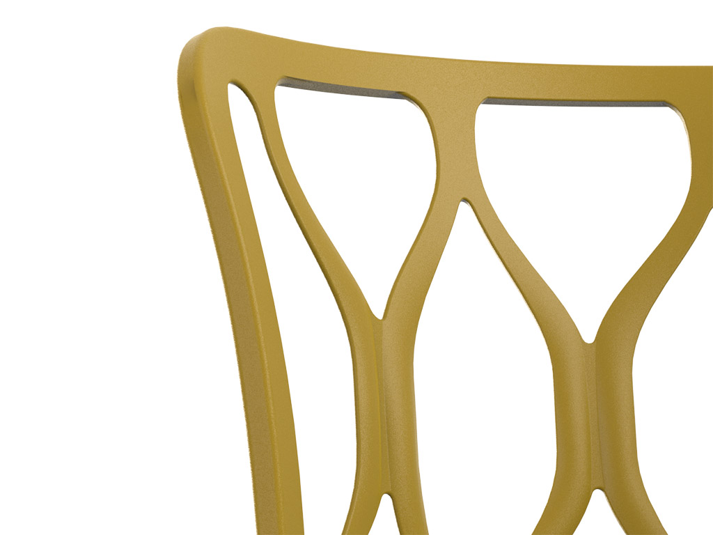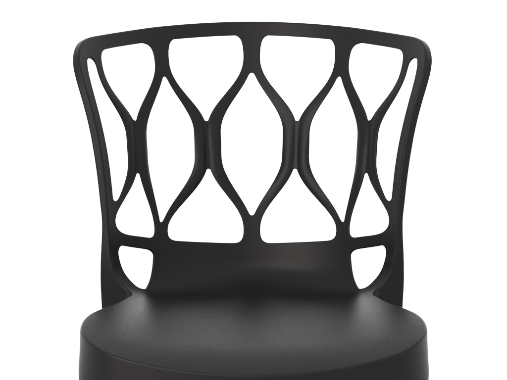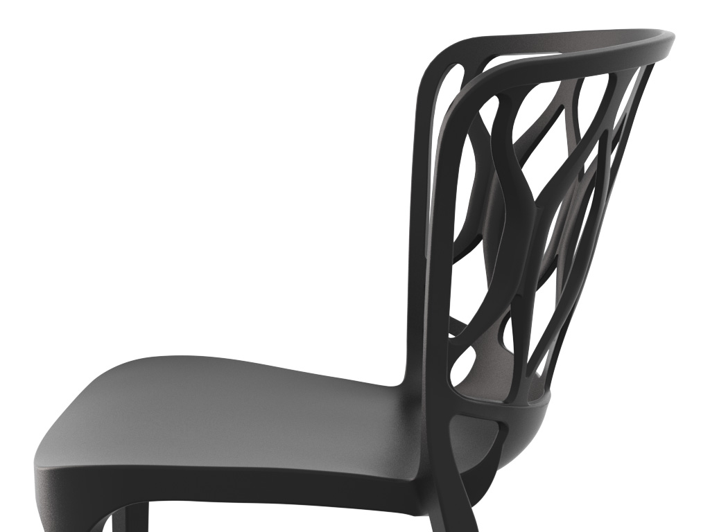 Dank der durchbrochenen Rückenlehne mit starkem ästhetischem Charakter werden diese Stühle zu einem echten Einrichtungselement, das sich deutlich abhebt und jede Umgebung aufwertet – von der modernen Küche bis hin zu designorientierten Gastronomieräumen – und dabei ein perfektes Gleichgewicht zwischen Komfort, Persönlichkeit und Funktionalität bietet.