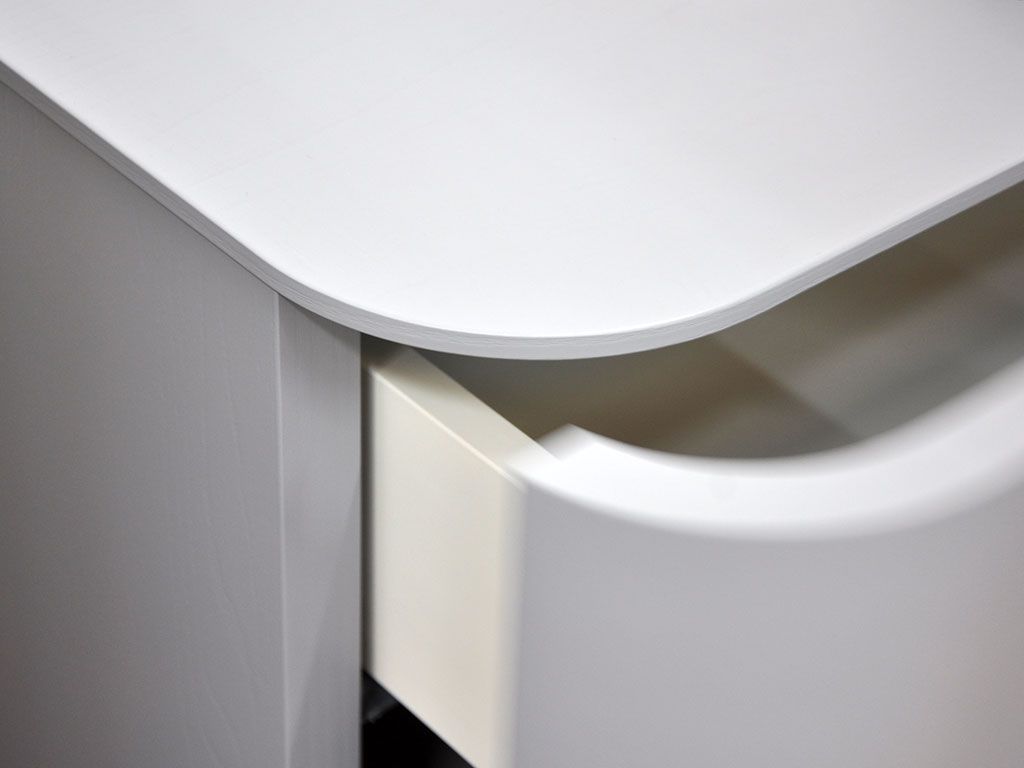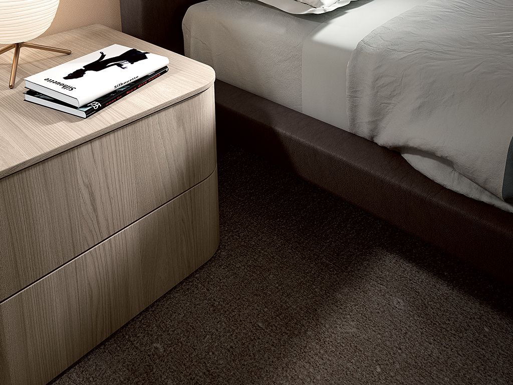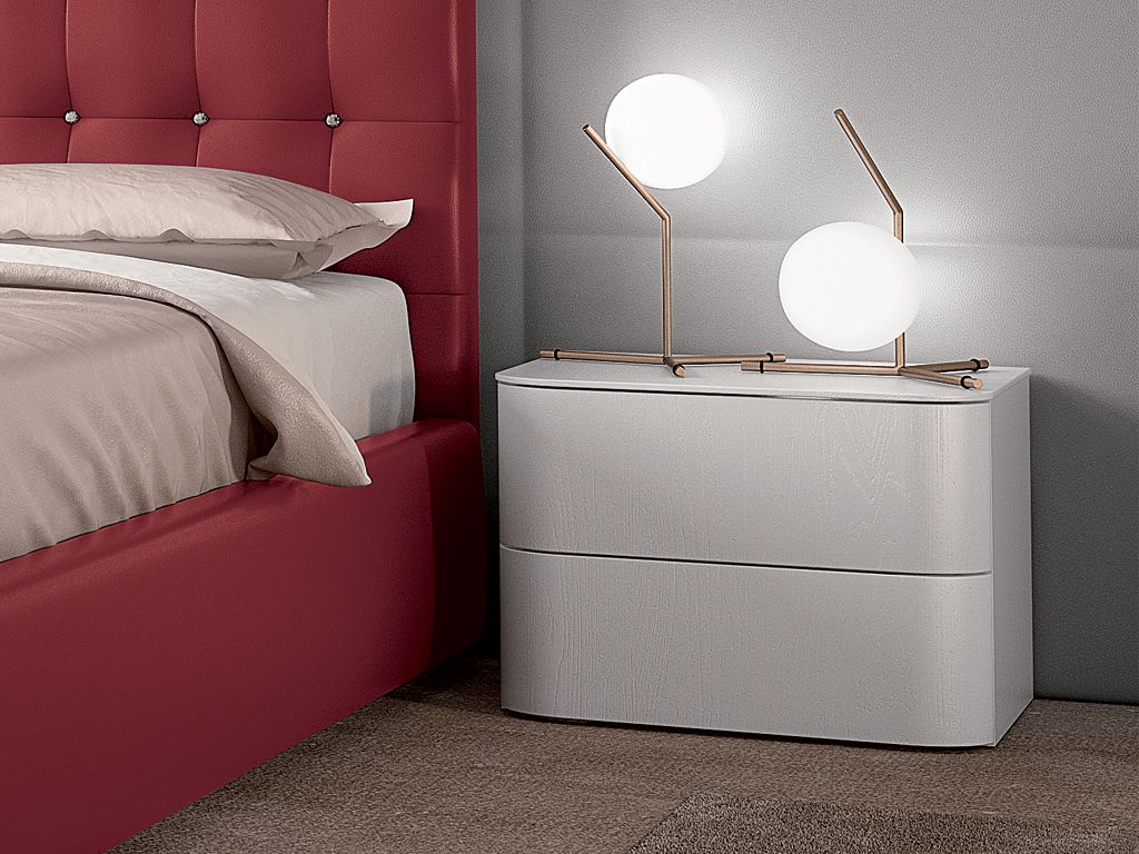 Nachttisch mit 2 Schubladen, ohne Griffe oder mit "Drücken und Öffnen" System aus verschiedenen Feinarbeitungen vom Holz oder von glatt matt lackierten Farben (spezifizieren Sie den Farbe-Kode bei der Bestellung).