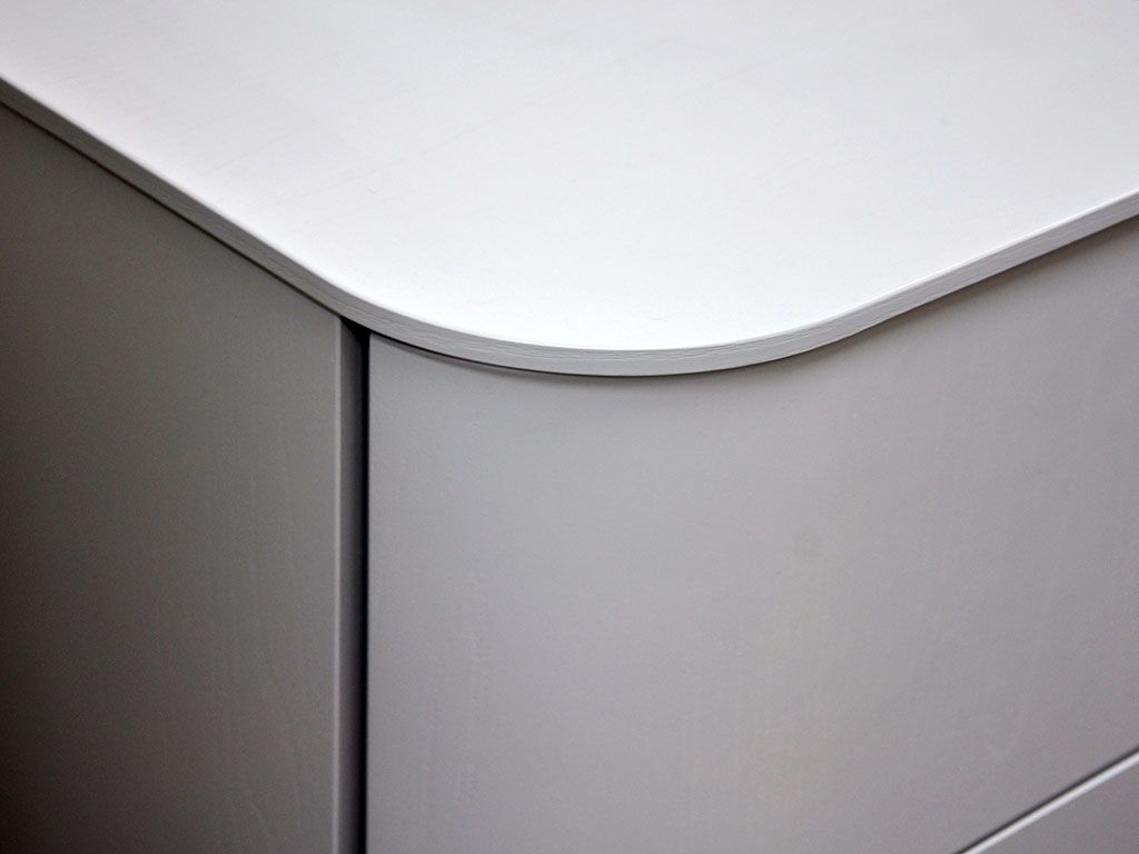 Die gebogenen Vorderseiten der Schublade haben eine Dicke von mm.22, die Seiten mm 14 und der Boden hat eine Dicke von mm.8,