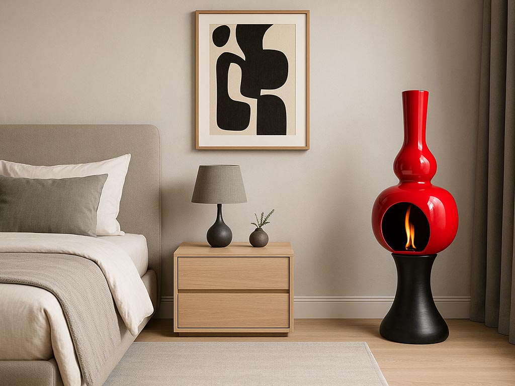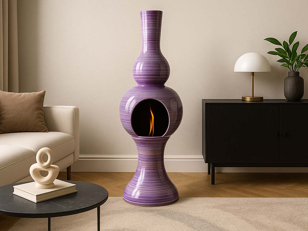 Handgemachter Kaminofen aus Ton. Verbrennung durch Bioethanol. Mit jedem Kaminofen werden Sie auch einen Tank aus Stahl und eine Kohlenschaufel (um die Flamme zu löschen) bekommen. Er braucht keinen Rauchfang. Verschiedene Farben verfügbar.