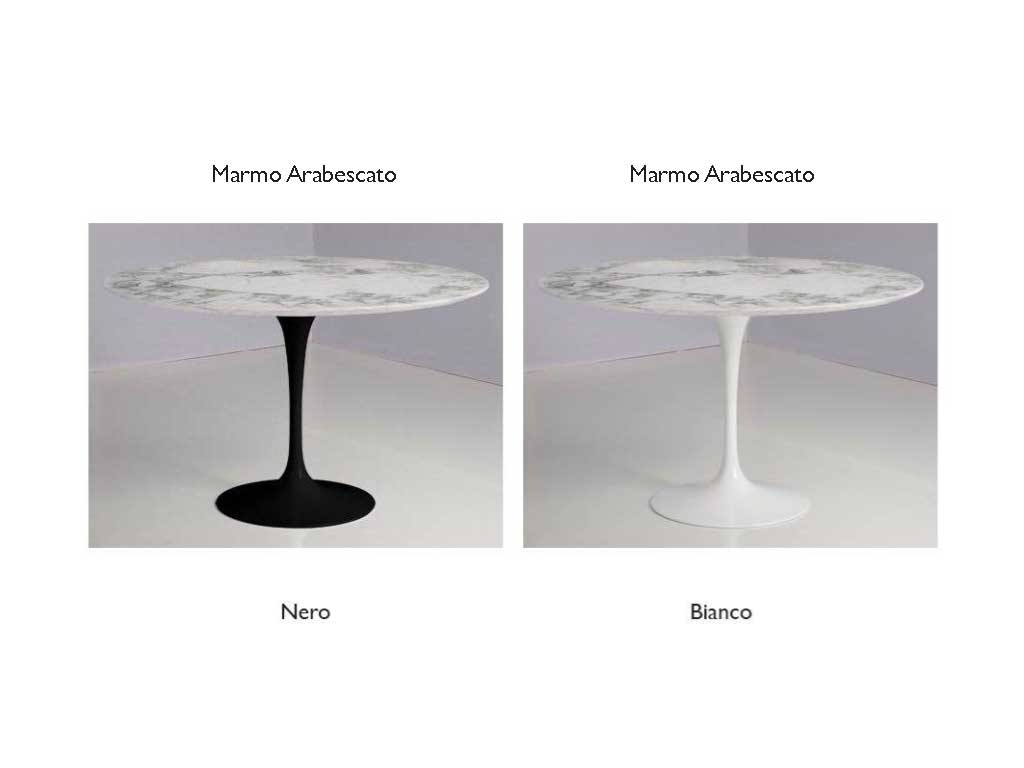 Runder klassischer Tisch mit runder Basis glänzend lackiertem Aluminium, verfügbar nur Basis oder mit Platte aus halbglänzend weißem oder schwarzem Walzstück oder aus glänzendem Marmor mit stumpfem Kante.