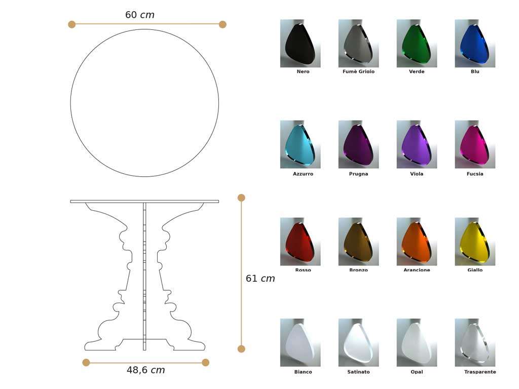 Rundes Tischchen aus Acrylglas, durch einen eleganten zentralen Sockel gekennzeichnet....