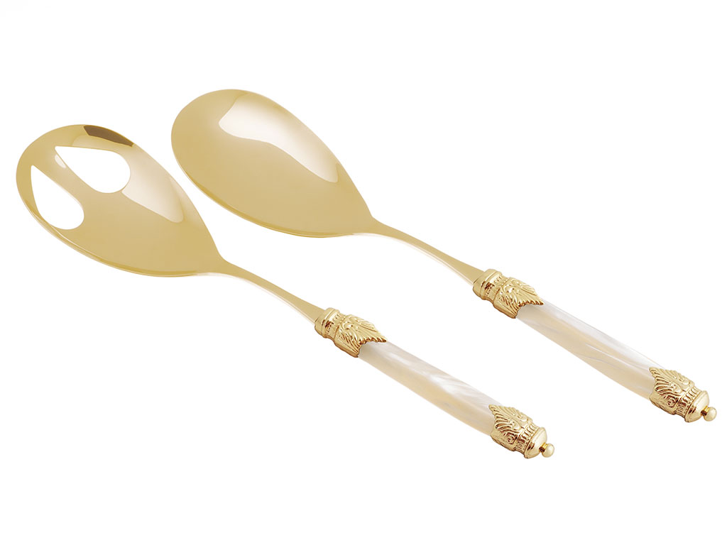 Arianna Oro Salatbesteck – Klassische Eleganz aus vergoldetem Stahl mit Perlmutt-Effekt-Griff