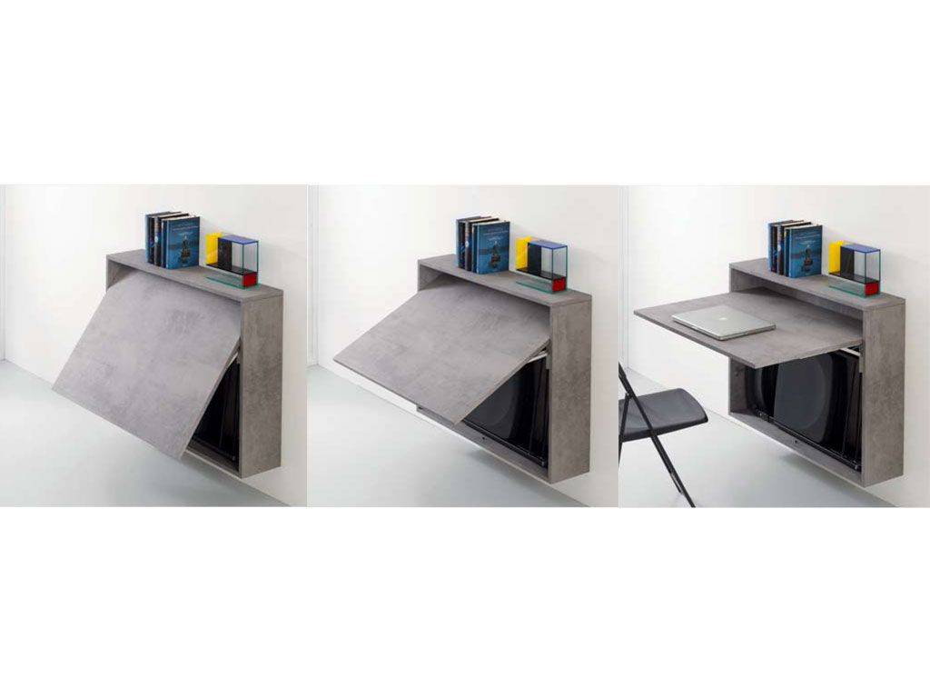Versenkbarer Schreibtisch, versenkbarer Schreibtisch Design, versenkbarer Schreibtisch, auch geeignet als platzsparender Schreibtisch oder Design versenkbarer Schreibtisch, Bureau ist ein Baukastensystem von: -Wand Schreibtisch/Tisch Klappbar, gemacht von Gestell aus lackiertem Stahl und öko- Laminierte fläche -ab 18 mm. -Wand-Regal mit lackierten Stahlrahmen und laminierte Spitze und 25 mm ökologisch.