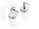 Seifenspender und Zahnputzbecher, Seifen- und Zahnbürstenhalter, wandmontierter Zahnpastahalter ideal als set von Seifen- und Zahnbürstenhalter oder als Badezimmer Seifenspender und Zahnputzbecher. Seifenspender und Zahnputzbecher aus verchromten Metall und satiniertem Glas.