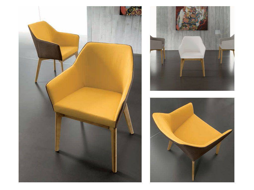 Traid Sessel mit Struktur aus natürlichem Massiv-Eschenholz und Bezug aus Gewebe in der Farbe Braun/Gelb oder aus Kunstleder in verschiedenen Farben.