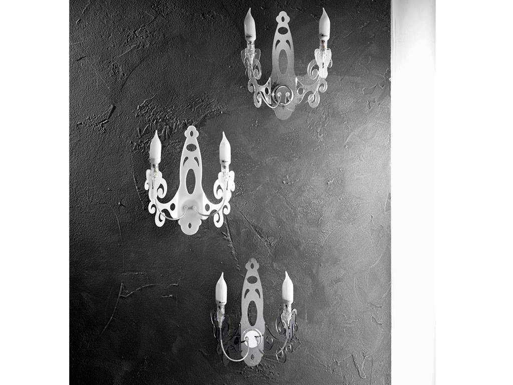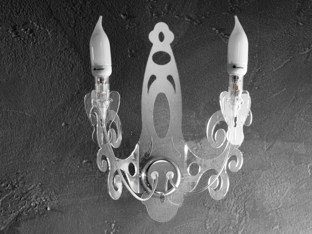 Wand Applique aus Methacrylat mit Struktur aus Metall.Verfügbare Farben: durchsichtig, ruß durchsichtig und weiß.Leuchtstoffbirnen (ausgeschlossen) 2x 7W/230V E14 2700°K.
