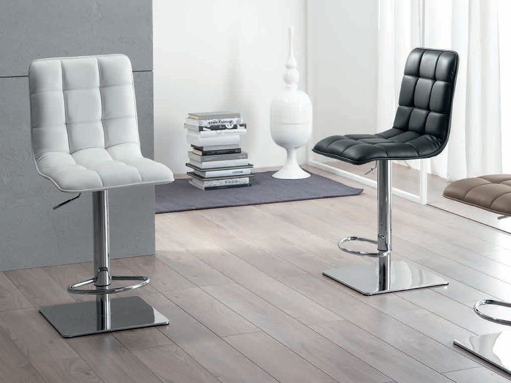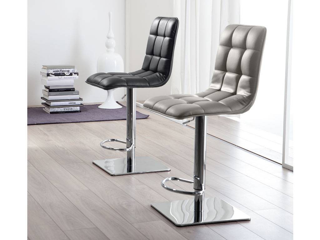 Hocker mit verstellbarer Höhe (Gas System). Struktur aus verchromtem Metall und Sitz mit Kunstleder bezogen in den Farben: taubengrau