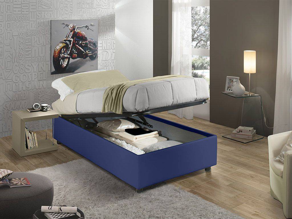 Es ist verfügbar mit festem Federrahmen oder mit einem nützlichem Behälter, in dem man Decken, Bettbezug und Bettwäsche gelegt kann. Der Behälter ermöglicht Raum einzusparen, besonders in kleinen Häusern.