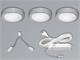 Der Kit besteht aus 3 LED Spots mit Struktur aus Metall und Schirm aus Polykarbonat. Die Spots können als Einbauleuchten oder Deckenleuchten (durch die Spurverbreiterungen im Kit enthalten) montiert werden.