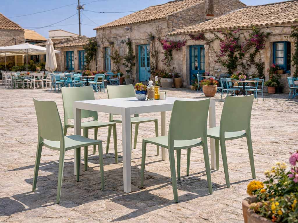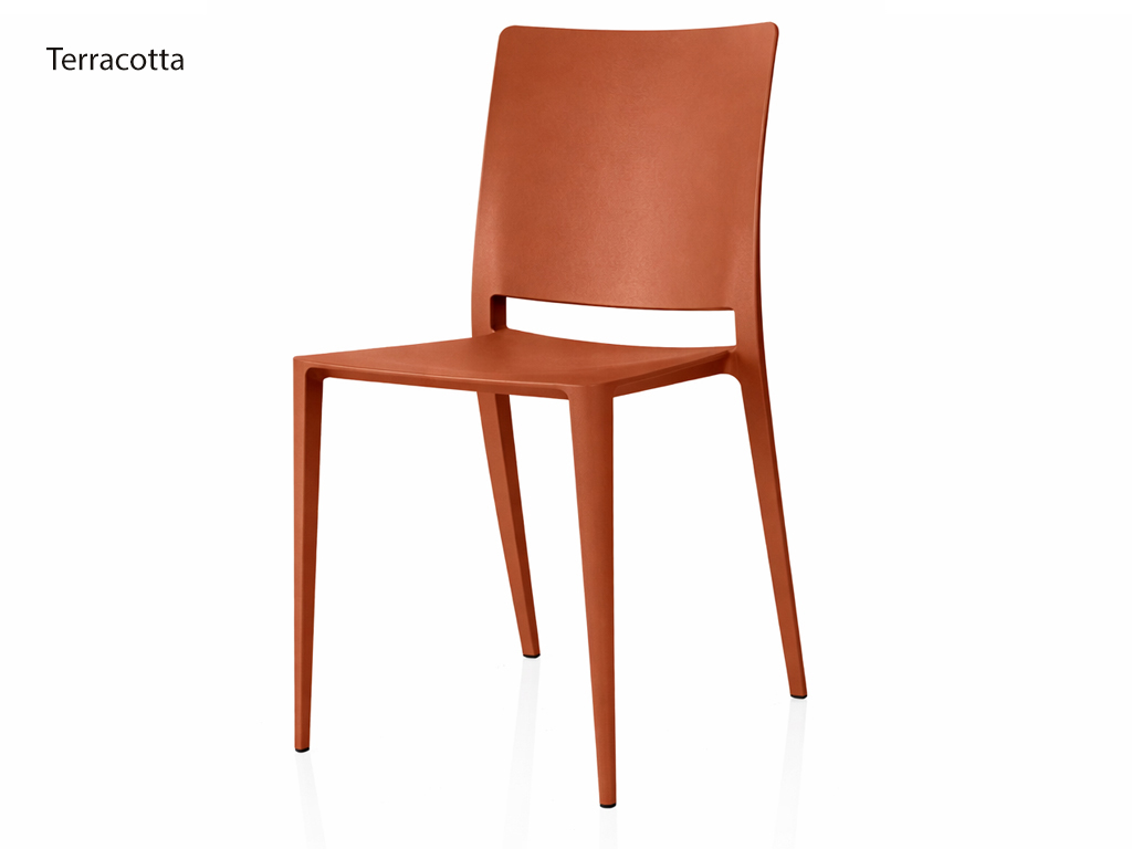 Gefertigt aus 100 % recycelbarem Polypropylen, vereinen diese farbigen Stühle, erhältlich in verschiedenen Pastellfarben, Nachhaltigkeit, Leichtigkeit und hohe Leistungsfähigkeit. Die Monoblock-Struktur sorgt für Stabilität und Langlebigkeit, während die CATAS-Zertifizierung Qualität sowie Eignung für den professionellen und Contract-Bereich garantiert.