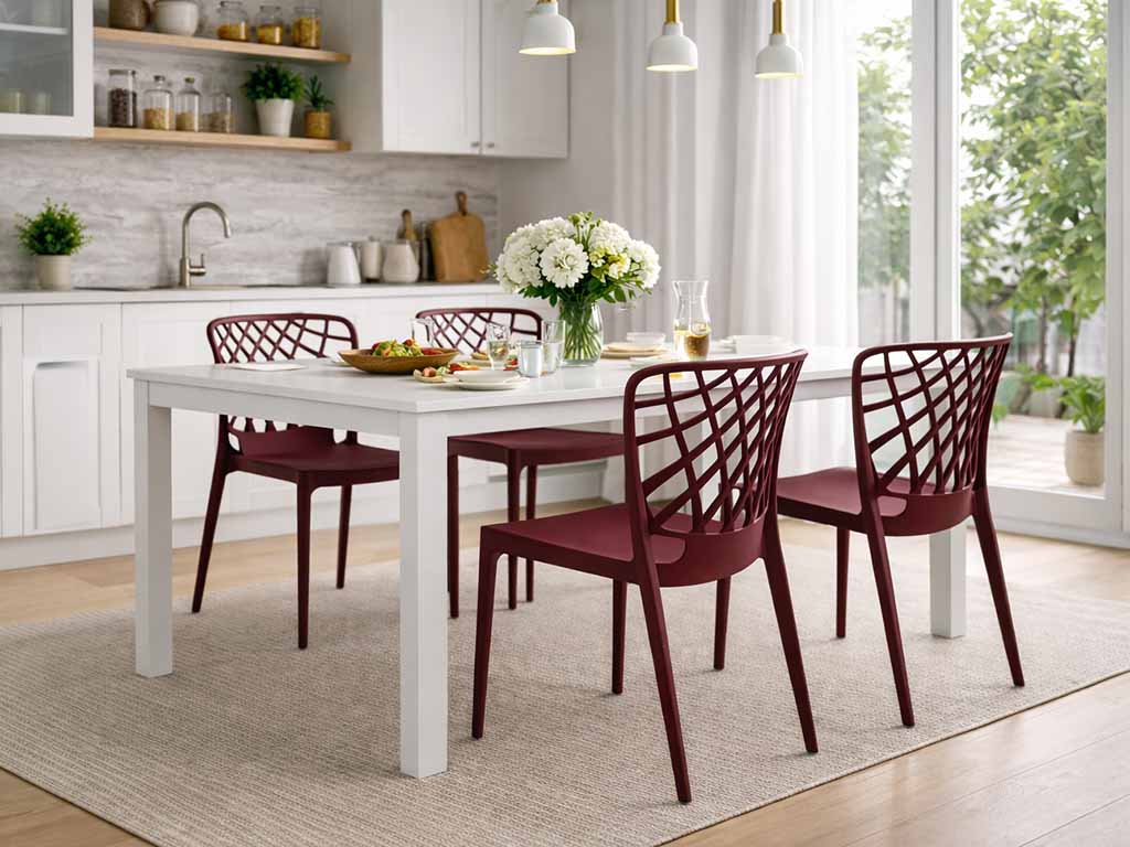Die ergonomische Sitzfläche und die ausgewogenen Proportionen gewährleisten hohen Komfort auch bei längerem Gebrauch, während die klaren Linien eine einfache Kombination mit Tischen unterschiedlicher Stilrichtungen ermöglichen, von minimalistisch bis dekorativ.