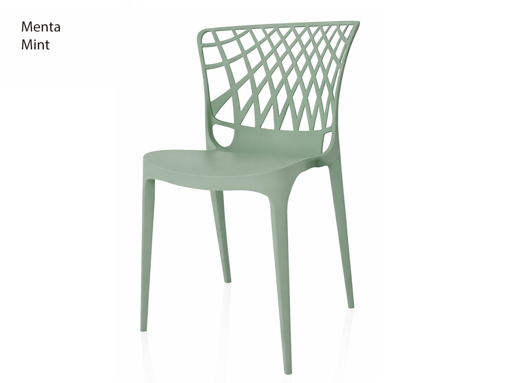 Das Material besteht aus widerstandsfähigem und recycelbarem Polypropylen. Die Stühle sind für den Innen- und Außenbereich geeignet, bis zu 6 Stück stapelbar und werden im 4er-Set geliefert.