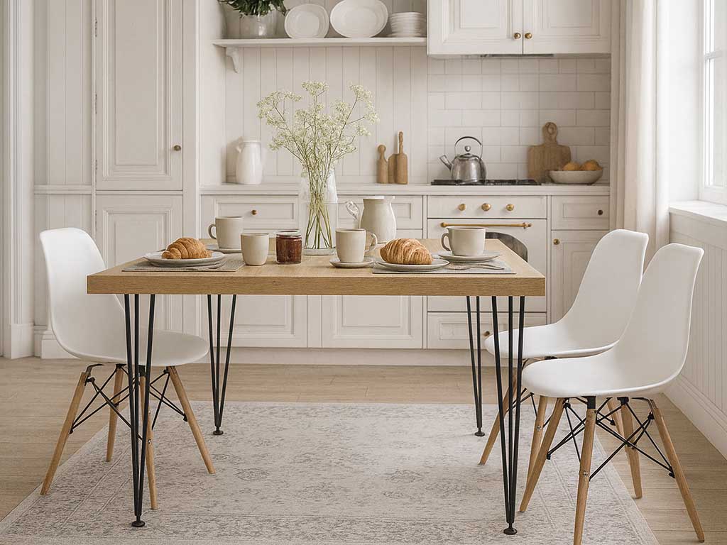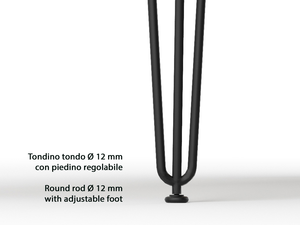 Die Tischbeine aus Ø12 mm Rundstahl sind die ideale Lösung für alle, die einen individuellen Tisch, einen modernen Schreibtisch oder eine stilvolle Konsole im minimalistischen oder industriellen Design gestalten möchten. Ihr leichtes, zeitgenössisches Erscheinungsbild, inspiriert von den ikonischen Hairpin Legs, passt perfekt zu Massivholz- oder Multiplexplatten und macht sie zur perfekten Wahl für stabile, personalisierte DIY-Tische mit hoher visueller Wirkung.