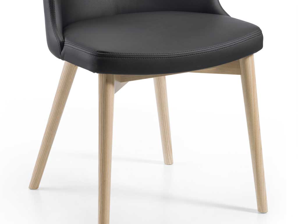 Struktur des Stuhls aus Eschenholz, ganz mit Leder oder Kunstleder von ausgezeichneter Qualität bezogen, die seine Eleganz und handwerkliche Verarbeitung verstärkt.