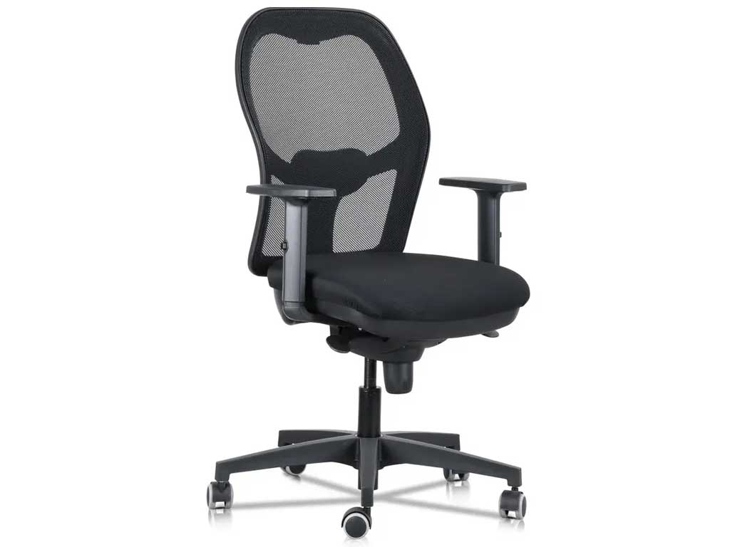 Technische Daten:Sitz: funktionsfähig mit oder ohne gepolsterte Kopfstütze.Sitz: Polypropylen mit Schaumstoffbezug und Polsterung.Rückenlehne: ergonomisch geformte, höhenverstellbare Lendenwirbelzone.Mechanismus: Synchro aus epoxidlackiertem Metall. 5 Blöcke. Anpassung an das Gewicht des Benutzers. Anti-Schock-Vorrichtung.Armlehnen: höhenverstellbar.