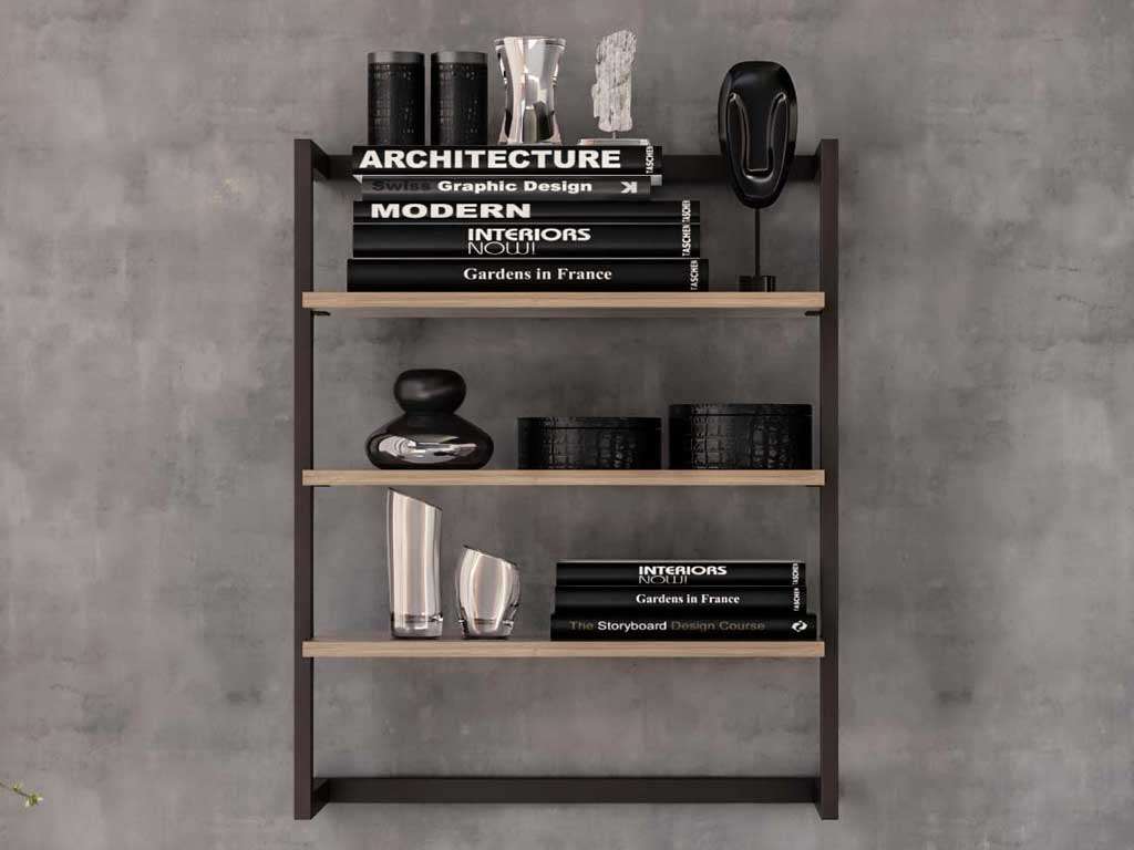 Step: wandbücherregal aus Metall und Holz