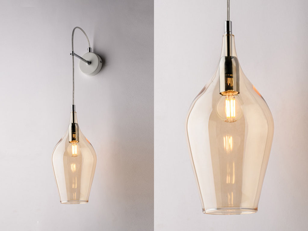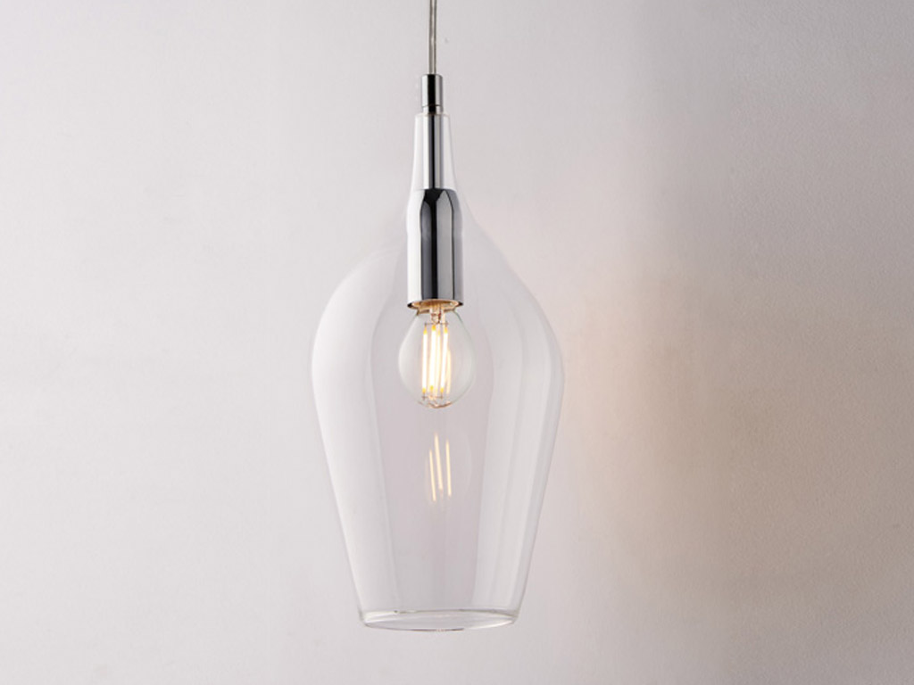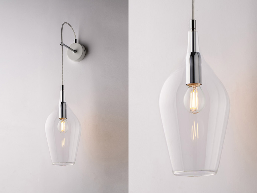 Die Leuchte verfügt über einen schlanken Glasdiffusor, der das Licht hervorhebt und seine Verteilung verstärkt. Die sichtbare Lichtquelle durch das Glas verleiht der Leuchte gleichzeitig einen retro- und modernen Touch, besonders wirkungsvoll in Kombination mit einer LED-Filamentlampe.