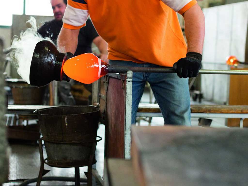 Die Herstellung von geblasenem Glas erfolgt nach alten Murano-Handwerkstechniken.