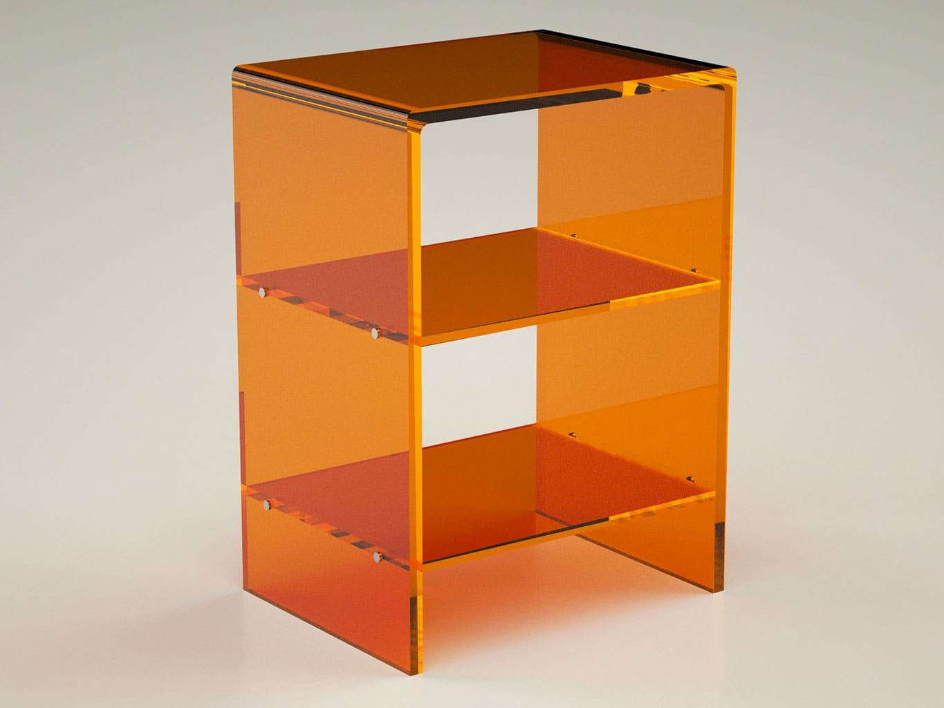 Coloured night table with two shelves, made of acrylic crystal , ideal as a bedroom nightstand or as a small table next to the sofa.