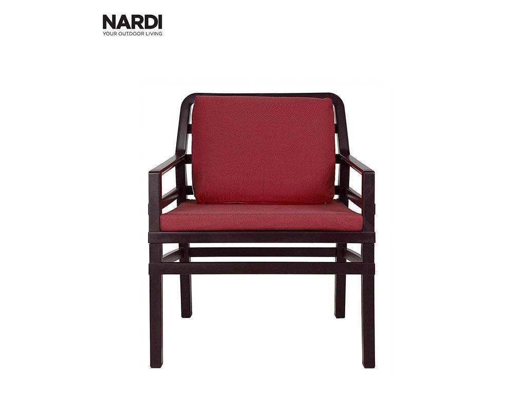 Outdoor and Indoor relax polypropylene armchair, demountable, with cushion and small non-slip foots. ARIA has a staved structure a little bit enveloping , his design takes up the theme of the romantic wood fences. The geometric design of the staves, the variation of their grade and distance, the relief effects of the different junctions give to the seat a light and a slender line. The Aria collection includes also a little table, with different measures, perfectly corresponding with the stylistic lines of the seat.