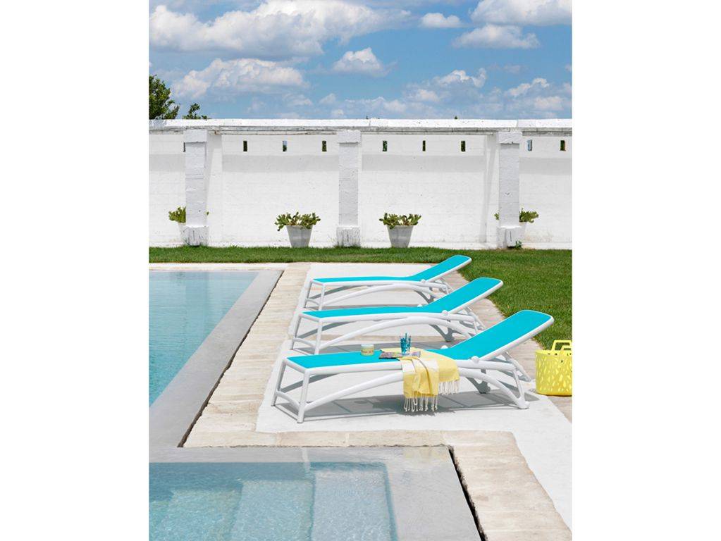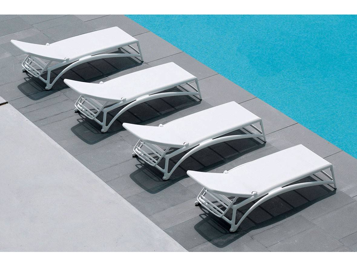 Sunbed with structure in polypropylene fiber glass and interior in synthetic fabric breathable and removable.