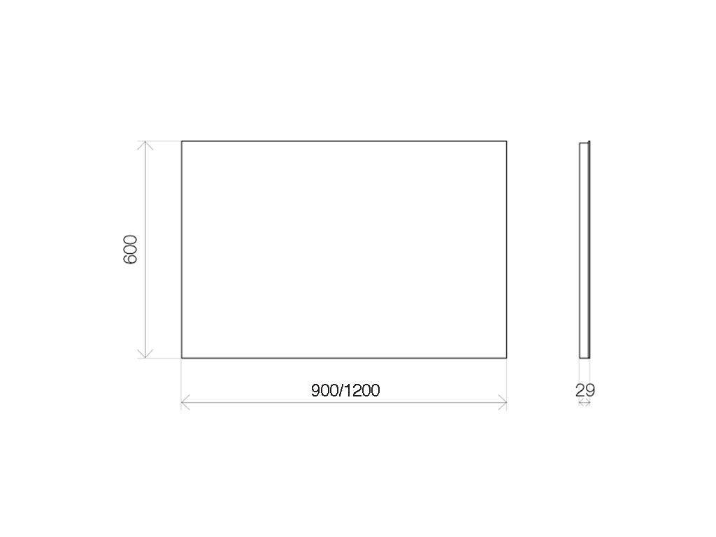 mm L900 x 600H x W29 mm L1200 x 600H x W29 Horizontal mirror. If you want the mirror to be placed vertically, at the time of the order specify it in "Notes" field. Provided with accessories for the montage