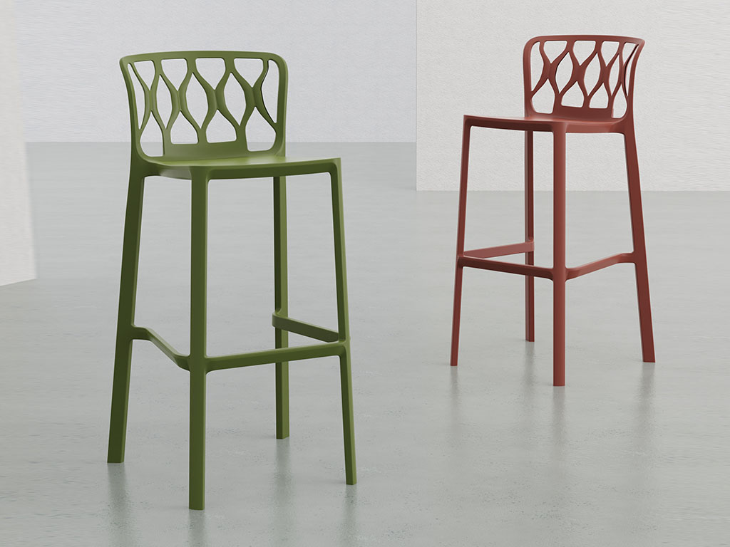 Made of 100% recyclable polypropylene, the stool guarantees durability, strength, and easy maintenance. Thanks to CATAS certification, it is suitable for intensive and contract use, making it perfect as a kitchen stool or for bars, restaurants, hotels, and public venues. The material also makes it suitable for covered outdoor settings, ensuring long-lasting performance over time.