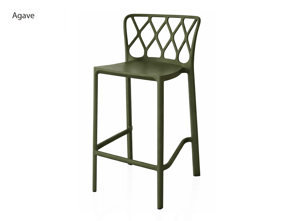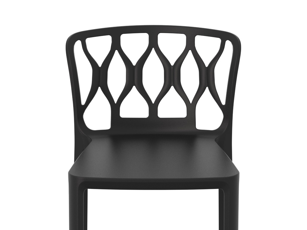 Modern stools are an increasingly popular furnishing solution in contemporary spaces, especially in bars, restaurants, snack counters, and contract environments. This stool with a 75 cm seat height stands out for its elegant and distinctive design, where the geometric woven backrest becomes the true focal point, adding visual lightness and a strong decorative impact.