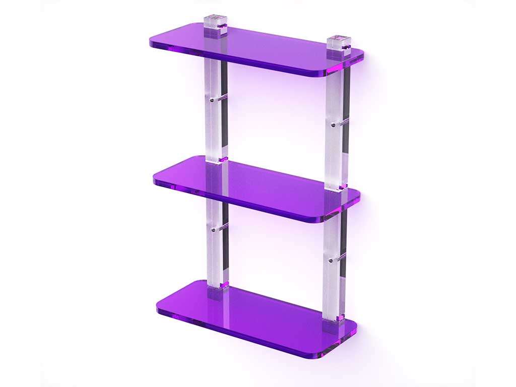 Original and modern bathroom rectangular shelf with three shelves in curved colored Plexiglas available in different colors. Useful and functional bathroom accessory with minimalist design.