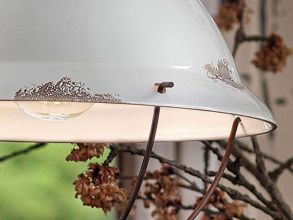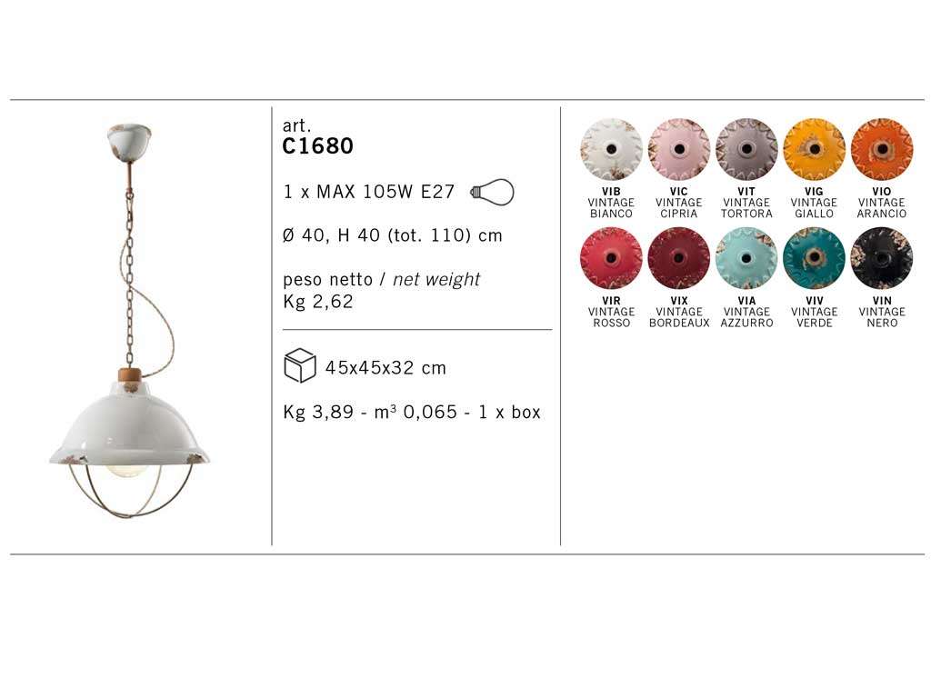 Industrial hanging light, vintage hanging light, perfect as kitchen light, industrial light or kitchen hanging light. Hanging boat lamp with retro style made of ceramic with vintage colours, its shape is inspired by the lanterns of merchant ships. The vintage and antiquated style is obtained through wear’s effects, which are realized on purpose using handcrafted techniques and paying attention to every single detail. Metal parts in antiqued iron Corten. Multicolored coated cotton cable. Chain in antiqued iron Corten.