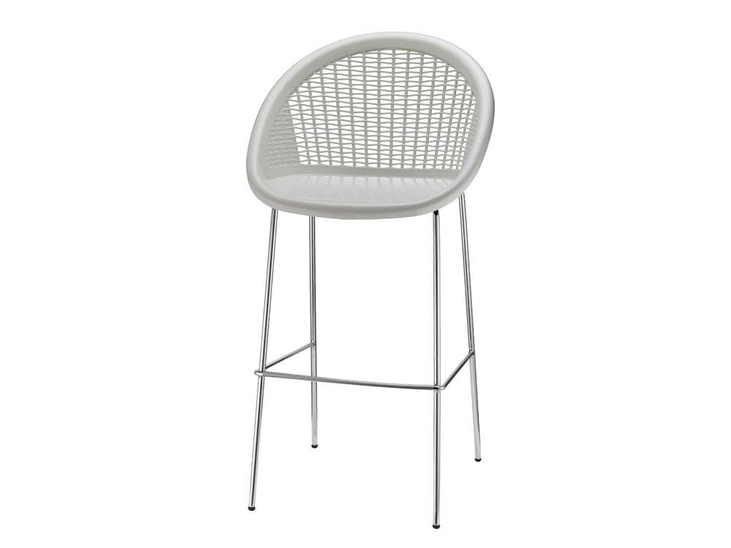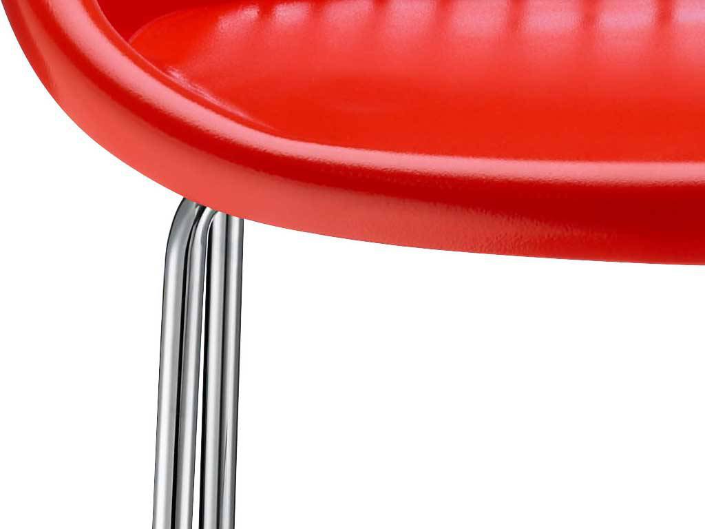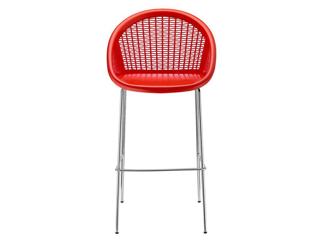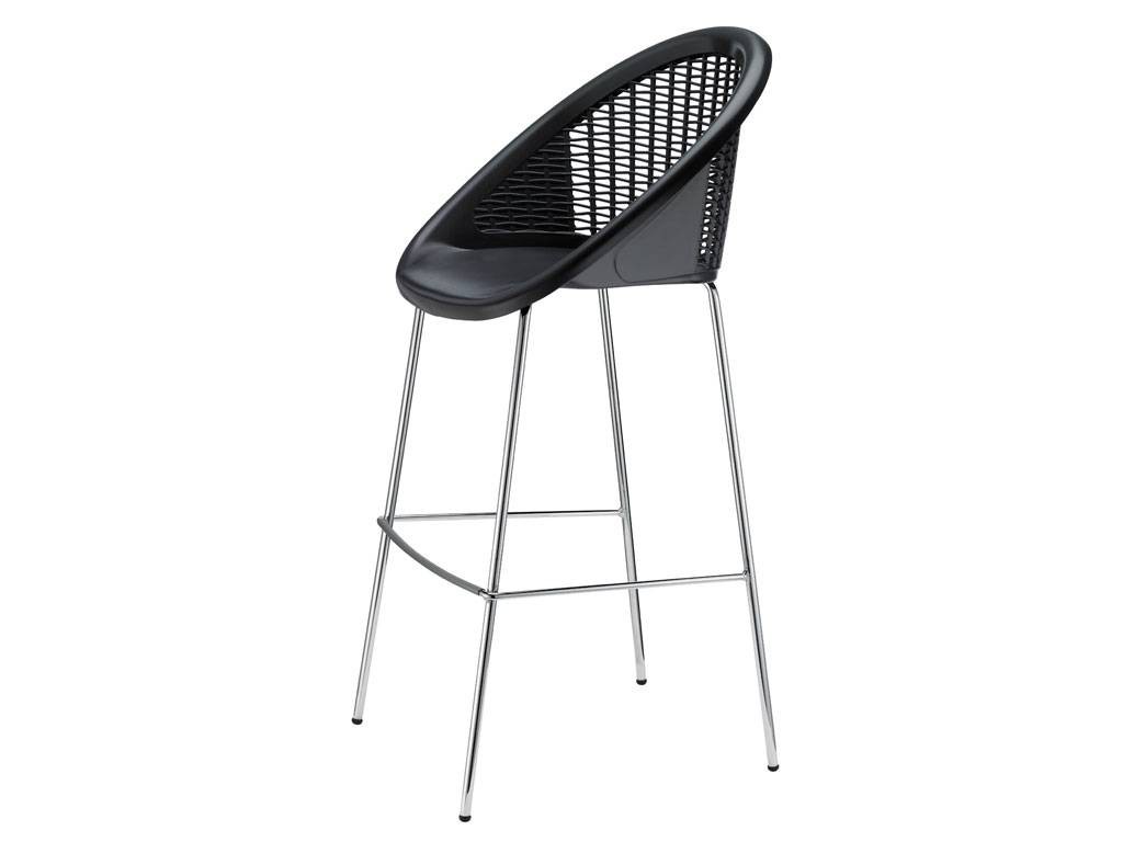 Recyclable polypropylene seat. Printed interlacing back. Frame with 4 tubolar chromed steel. For indoor use.SIZE: L. 62 W. 61 H. 110