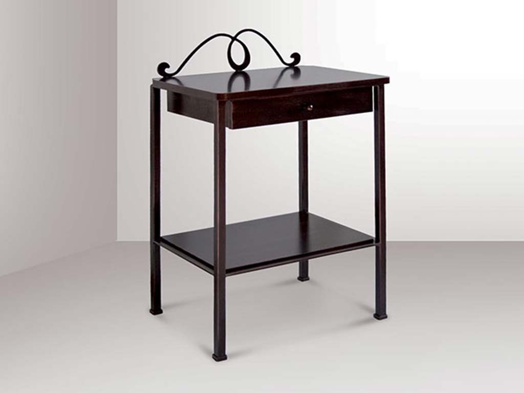 Wrought iron bedside table, drawer bedside table, wood and iron bedside table, perfect as side table for bed, nightstand. Wrought iron bedside table, with wood top and drawer.