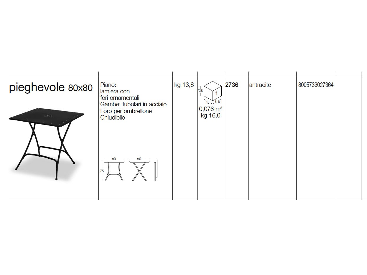 Dimensions: L 80 W 80 H 75 cm Kg 13,8