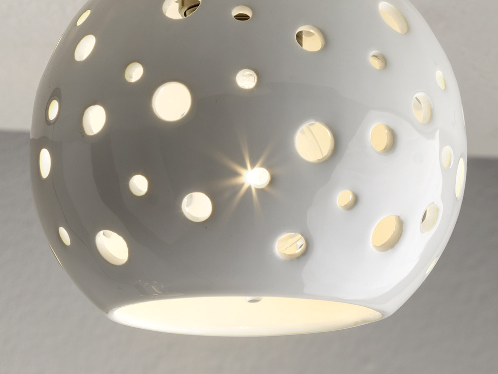 The ceramic lampshade Ø 15 cm, pierced with small holes, spreads a soft, even light.