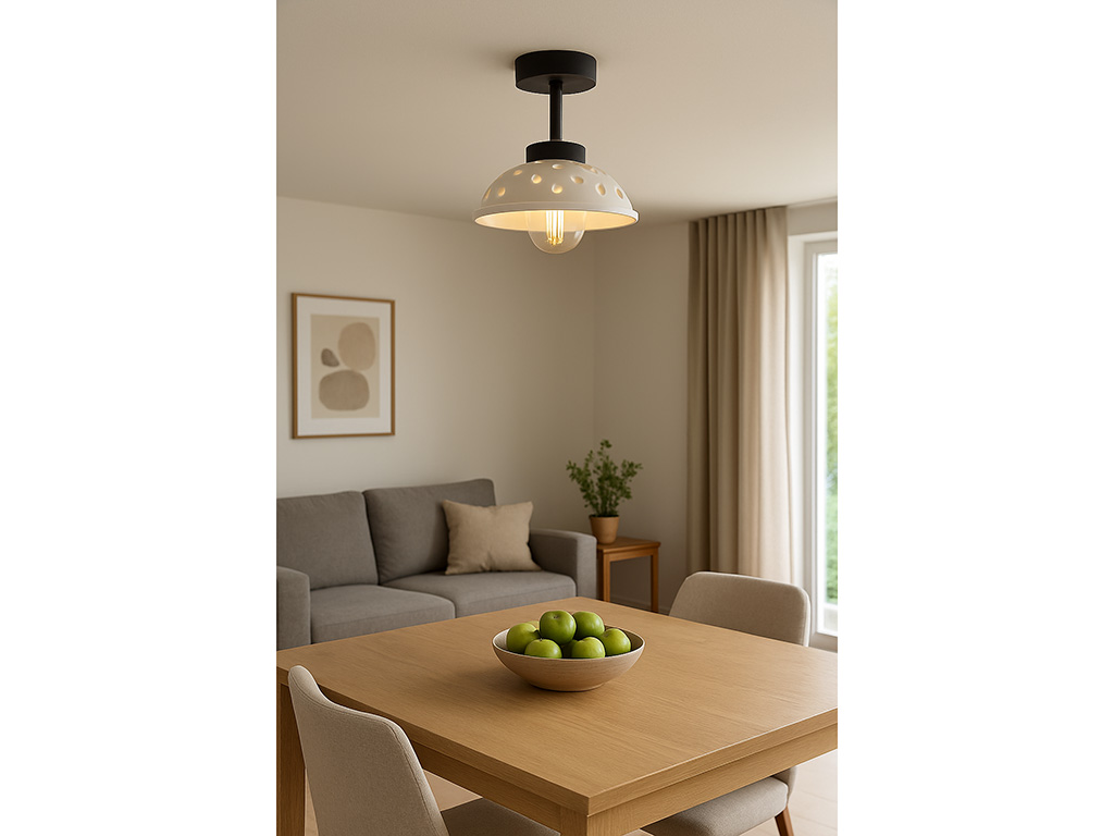 Ideal as a kitchen ceiling lamp, it mixes style and function. The compact size fits modern rooms and rustic spaces.