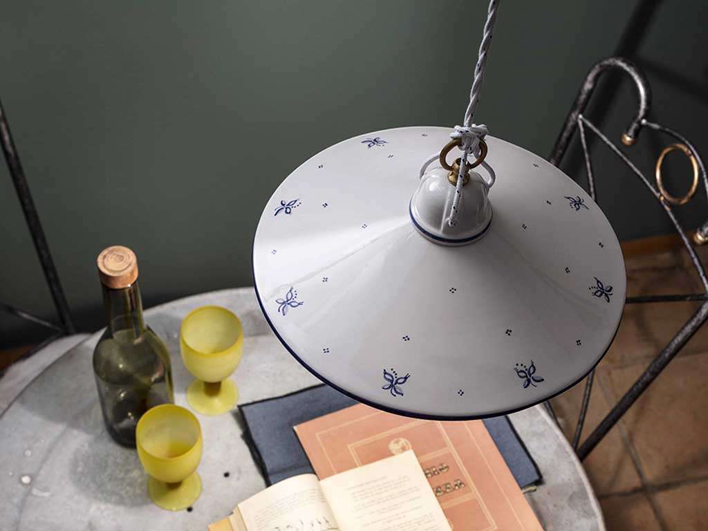 Dimensione: Ø 30 cm,Finitura Metallo: BI Bianco,Decoro: 38. DEC. SOB Filo blu