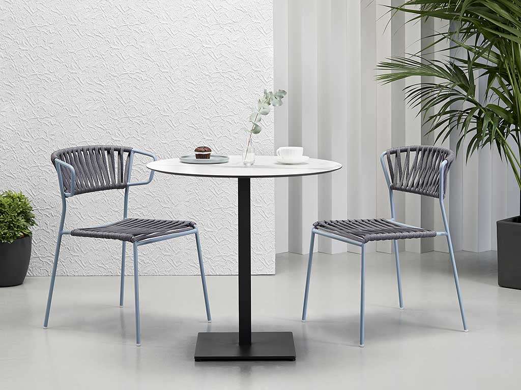 Garden armchair, outdoor chair, chair with armrests, perfect as balcony chair or metal garden chair. Outdoor chair with armrests in galvanized and painted tubular steel ø 16 mm. Seat in nautical rope that makes the chair resistant to outdoor life. Particularly suited and recommended for tourist accommodations such as hotels, rural tourism or B&B that have swimming pool, garden and/or outdoor spaces.