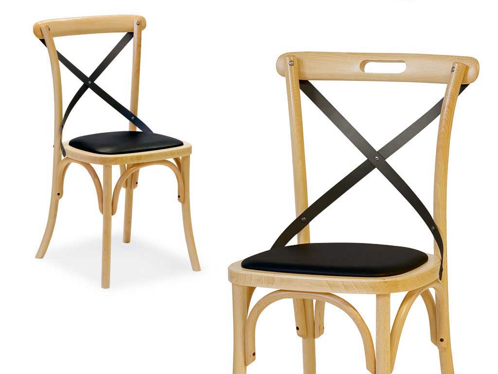 Vintage wooden chair, padded wooden chair, wooden chair with padded seat, perfect as wooden dining chair or vintage chair. Chair vintage with beech wood structure, padded seat covered in artificial leather, and back in Anthracite metal.