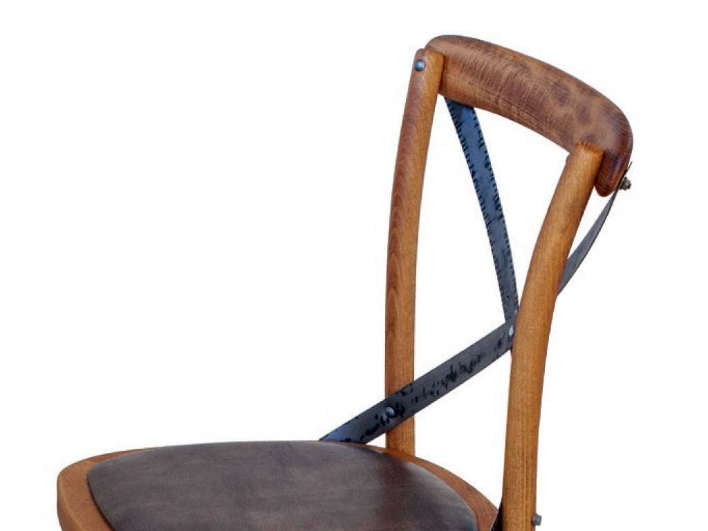 Vintage wooden chair, wood and iron chair, padded chair, perfect as kitchen wooden chair or shabby chair. Chair vintage with beech wood structure, padded seat covered in artificial leather, and back in metal with antique effect.