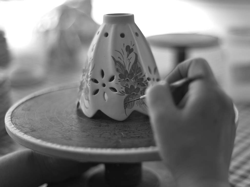 Classic wall light, indoor wall light, ceramic lamp, perfect as classic kitchen lighting or kitchen wall lamp. Wall light made of shiny white ceramic with coloured edge on the lamp cover and ceiling plate, and with metal details made of burnished brushed brass Lamp suitable for classic kitchen, for homes with rustic style, vintage or shabby chic furnishings. Dimensions: lampshade Ø 21 cm - P 22 cm, equipped with joint Lamp E27-100W (light bulb not supplied) Colours: Shiny White Ceramic with Coloured Border, metal details made of burnished brushed brass These ceramic lamps delicately worked and decorated, are hand-made by artisans who are faithful to the ancient traditions of the Made in Italy. They have revisited the classical style thanks to their knowledge, following the latest trend of interior lighting design. Product Made in Italy