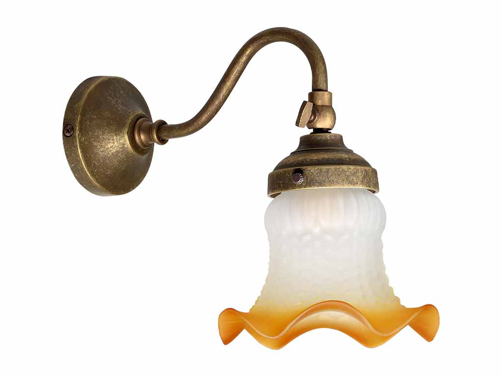 Classic wall sconce, vintage wall sconce, lamp with brass frame and decorated frosted glass, ideal as bedroom wall sconce, living room wall sconce or bathroom wall sconce. Vintage wall lamp with brass structure and frosted glass shade, made in Italy. Lamp with 90 degree adjustable joint to help direct the light. Dimensions: Wall fitting Ø 8 H 22 D 24.5 cm - 0.7 kg Glass shade V09 (H: 10.3, Ø: 12.8 cm) Brass Finishes: OAS Antique Brass (lamp in photo) Obtained by bronzing and tumbling processes followed by the application of a transparent matt protective coating. OBS Satin Bronze Obtained by satin-finishing and bronzing processes followed by brushing followed by the application of a transparent protective coating. Technical characteristics: IP20 degree of protection. Power 1 x MAX 6W LED E14 - 220-240V Protection Class I BULB NOT INCLUDED Experienced craftsmen follow the entire production process, from the individual piece to assembly, final refinement and packaging. More importantly, professional craftsmanship and attention to detail are still the key to each creation. Every single product, in short, is the result of many years of knowledge, experience and passion in Italian brass craftsmanship. Tips on how to clean the products - Use only a soft, dry and lint-free cloth. - Avoid abrasive cloths, towels, paper towels or other similar objects. - Avoid excessive rubbing of surfaces to avoid damaging the product. - Do not use sprays, detergents, alcohol, bleach or abrasives. Product made in Italy