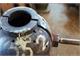 The glass, blown by the master glassmaker inside the stainless steel frame, inflates to the desired shape.