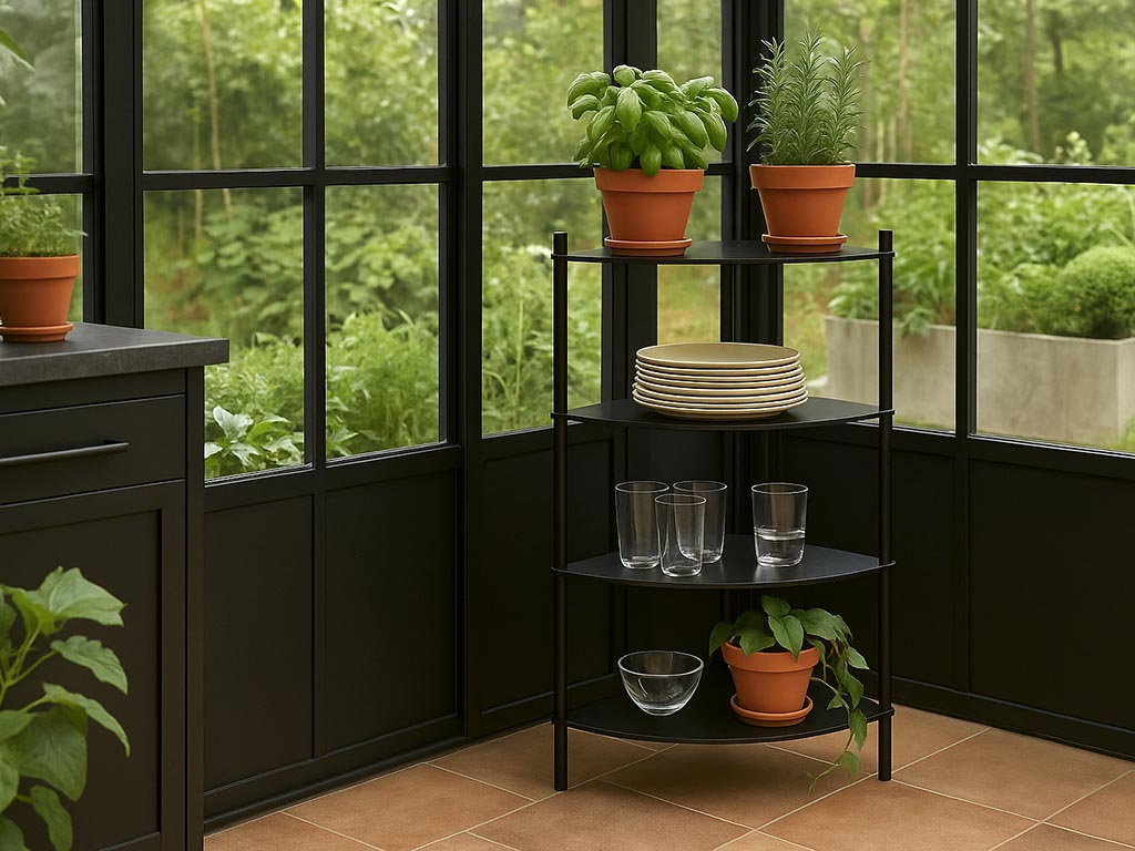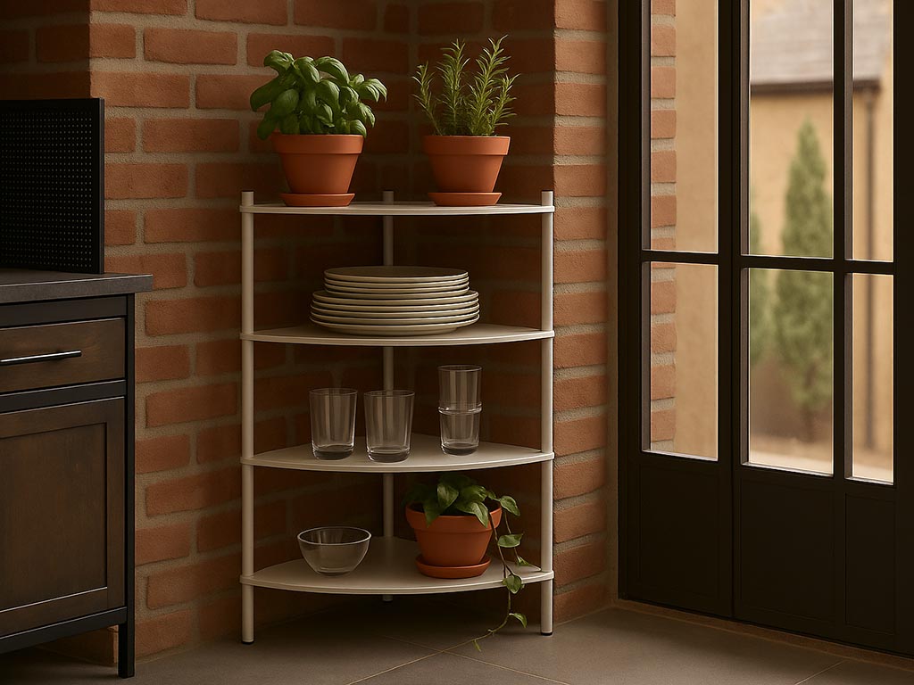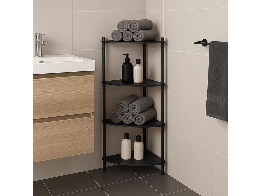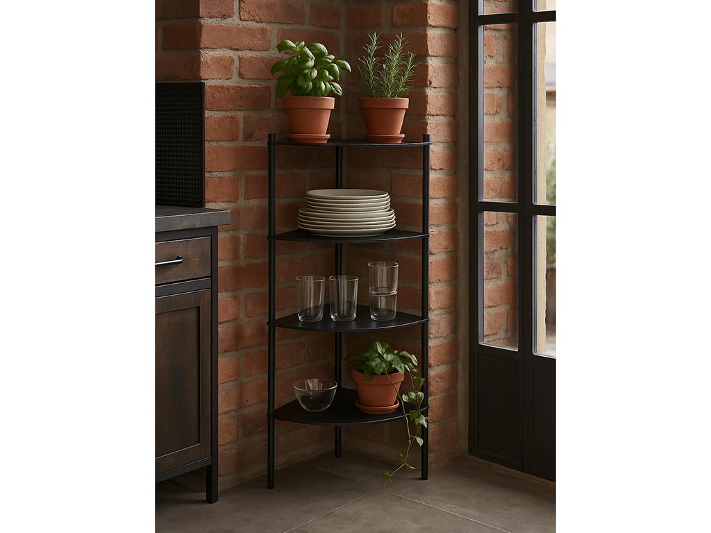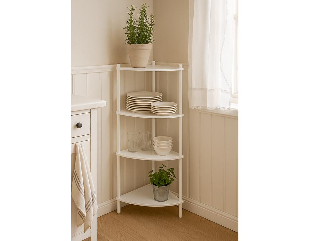 Corner bookcase, corner shelf, steel shelf, perfect as steel shelf for kitchen or corner shelf for bathroom.